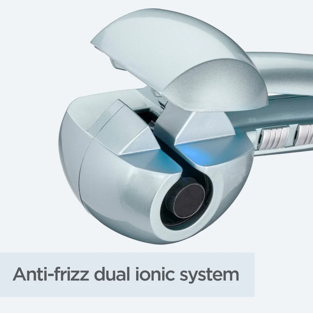 BaByliss Hydro Fusion Anti-Frizz Curl Secret Ceramic Curler Ice C1700U automatically draws hair into its ceramic curl chamber to effortlessly create smooth and shiny, defined curls.